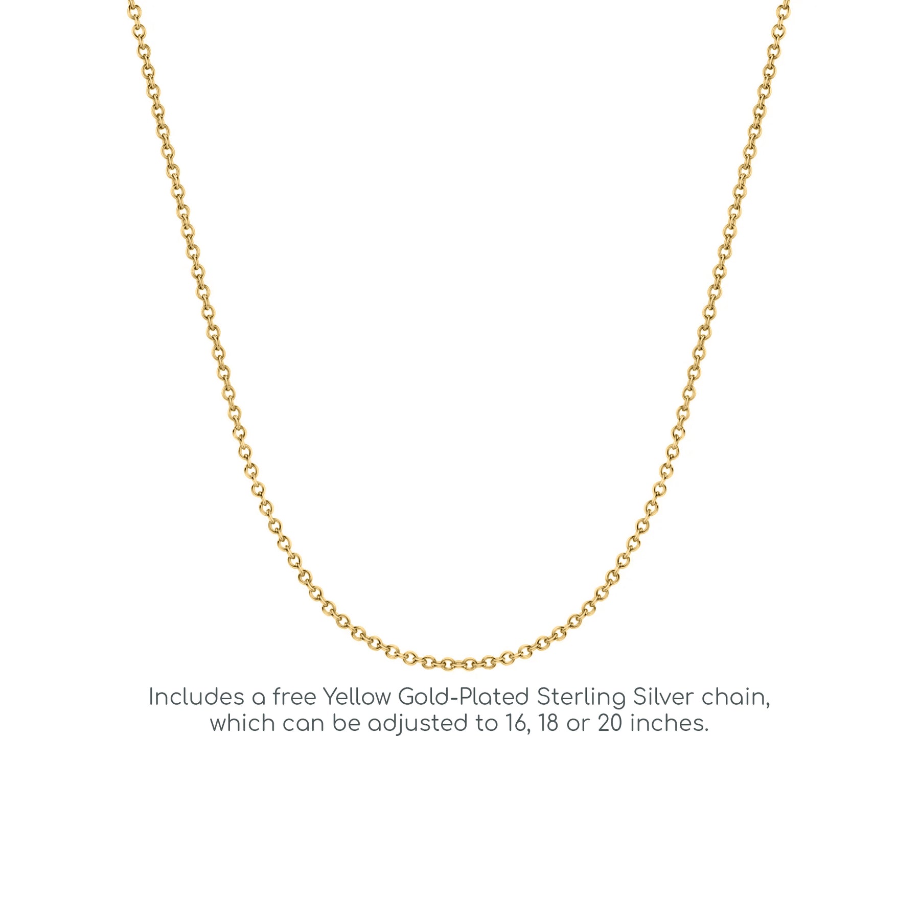 Includes a Yellow Gold-Plated Sterling Silver chain, which can be adjusted to 16, 18 or 20 inches.