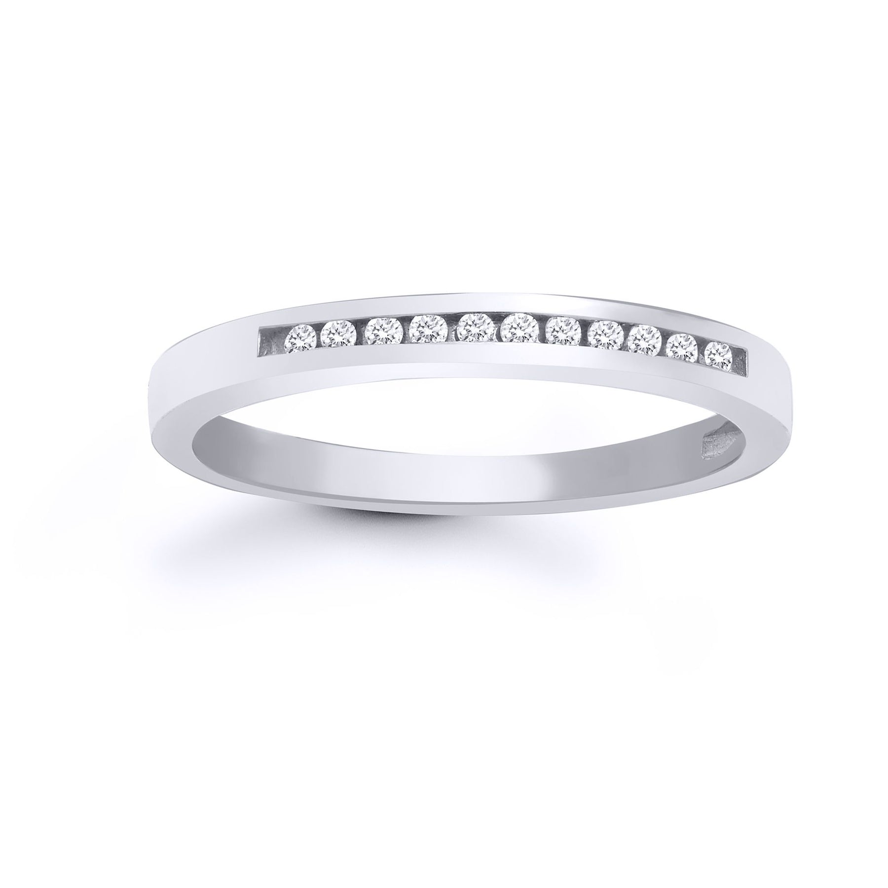 Jewelco London Conflict Free, Ladies Solid 9ct White Gold Channel Set Round H I1 0.1ct Diamond Dainty Band 2.5mm Eternity Ring.