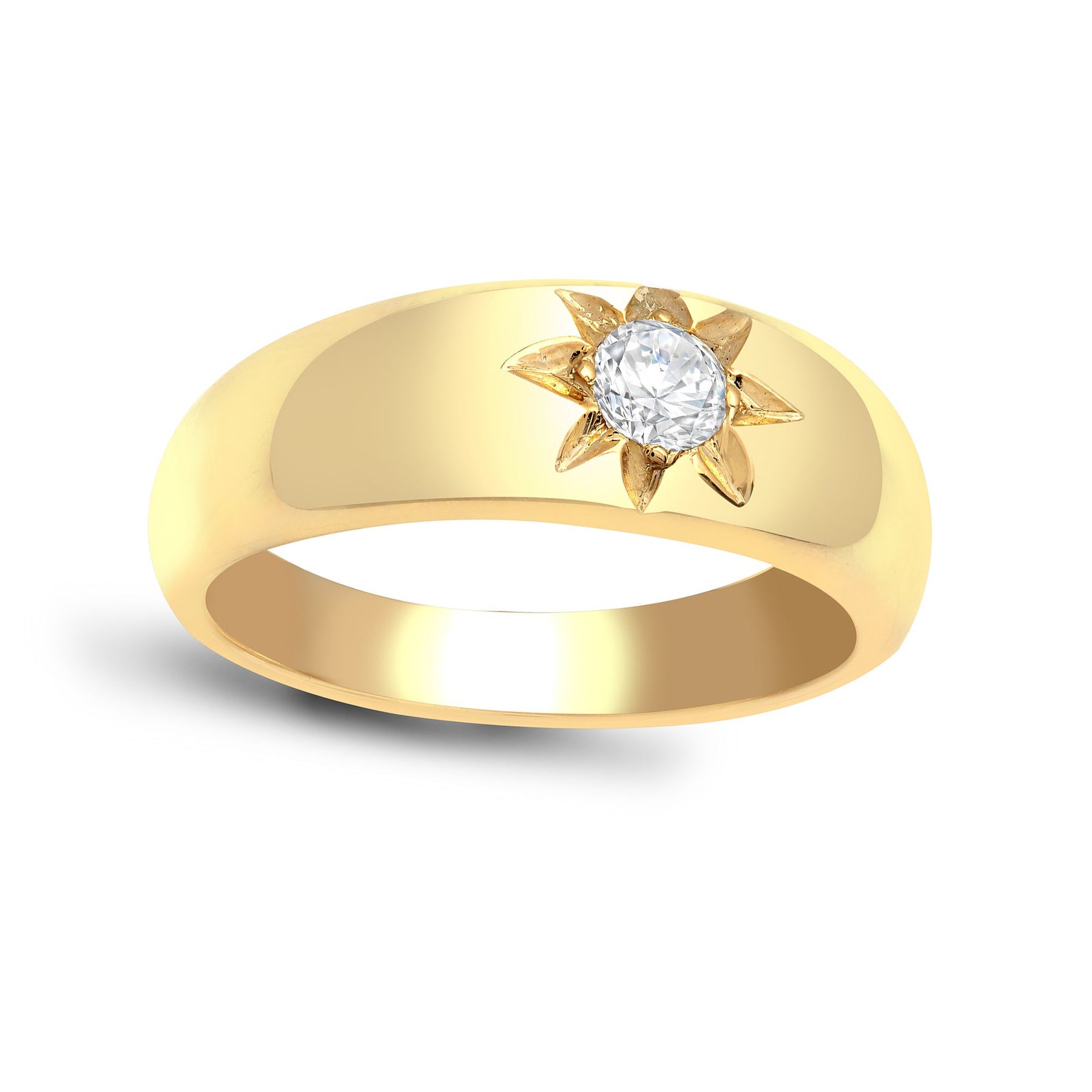 Jewelco London Conflict Free, Men's Solid 9ct Yellow Gold Gypsy Set Round H I1 0.25ct Diamond Domed Band 7mm Solitaire Ring. Made In England