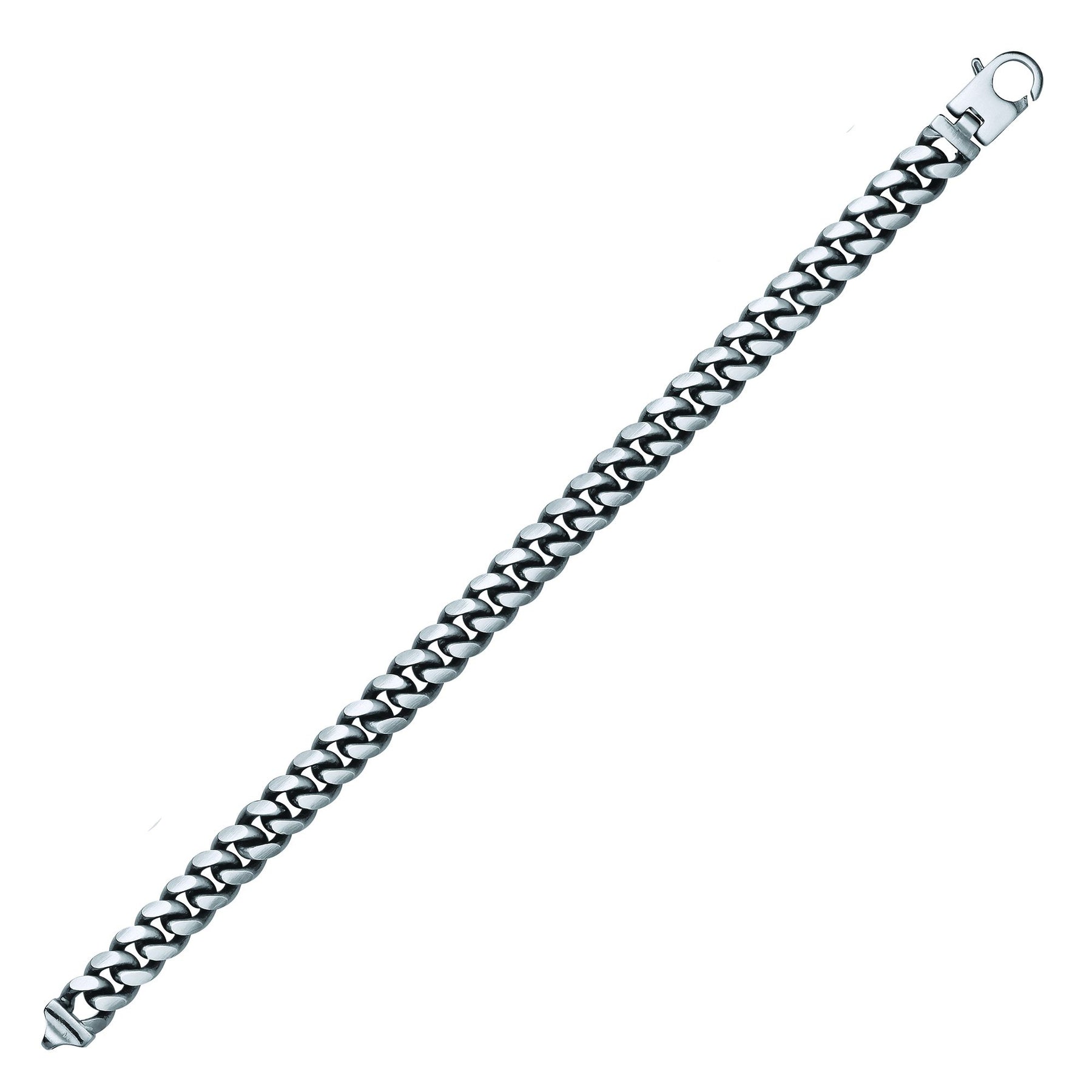 Jewelco London presents this piece from its latest collection of 925 Sterling Silver Rhodium Plated Jewellery. Mens Rhodium Plated Sterling Silver Oxidised Brushed Box Link Cuban Curb Bracelet 9mm 8.5 inch .