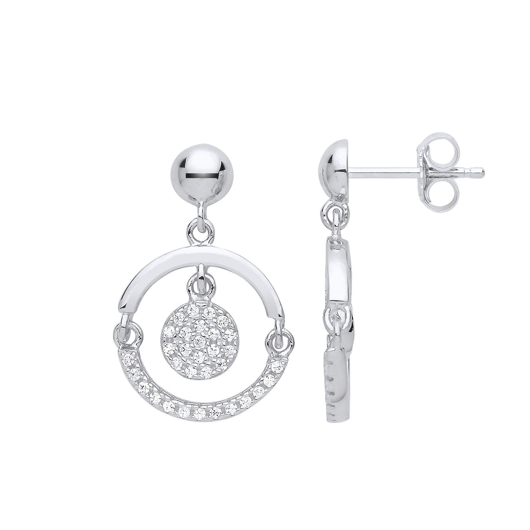Silver CZ Swing Hoop Disco Ball Drop Earrings