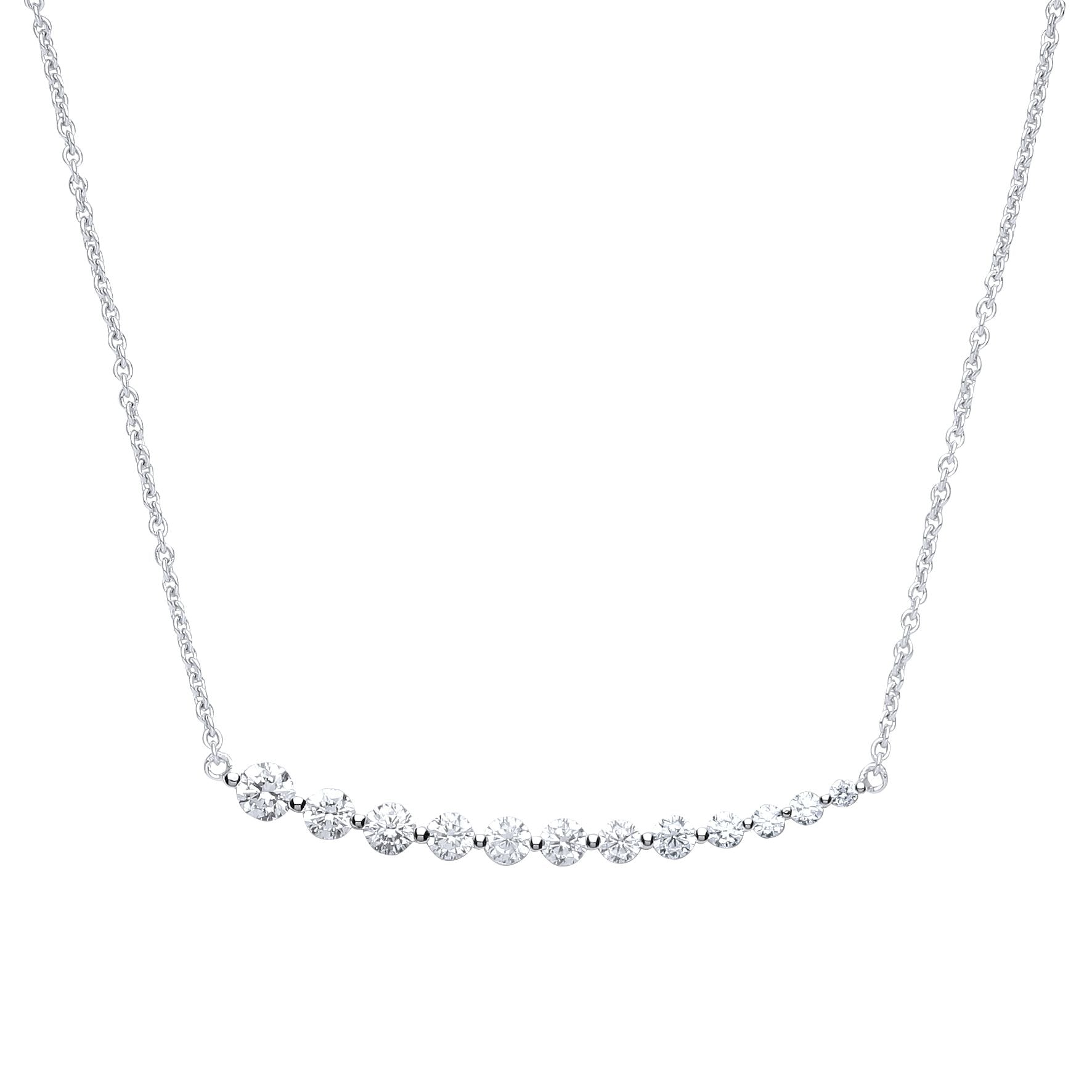 Jewelco London presents this piece from its latest collection of 925 Sterling Silver Rhodium Plated Jewellery. Ladies Rhodium Plated Sterling Silver Round Brilliant Cubic zirconia Graduating Line Eternity Necklace 16 + 2 inch .