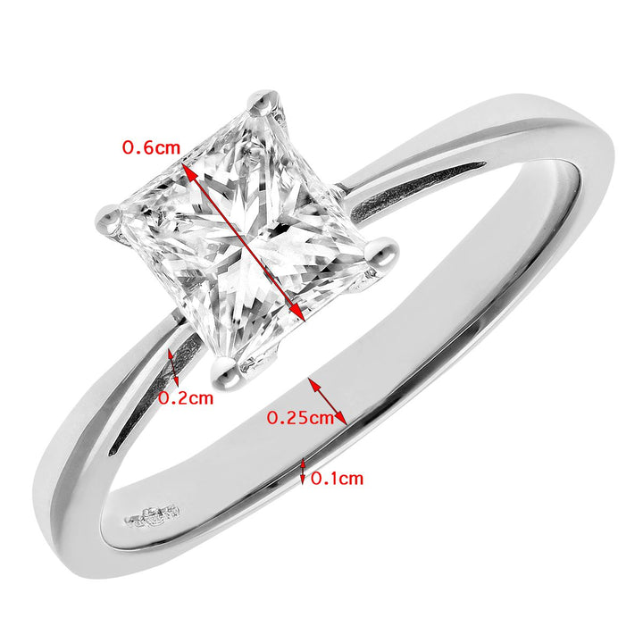 18ct White Gold Princess 1ct Diamond 4 Claw Solitaire Ring 6mm