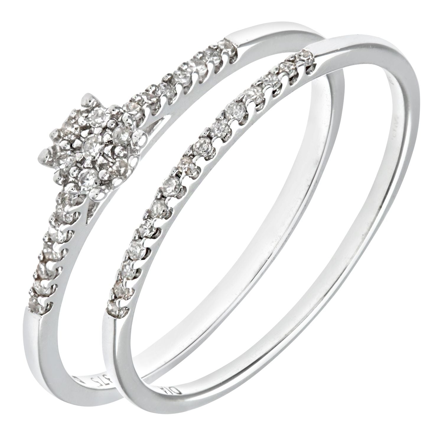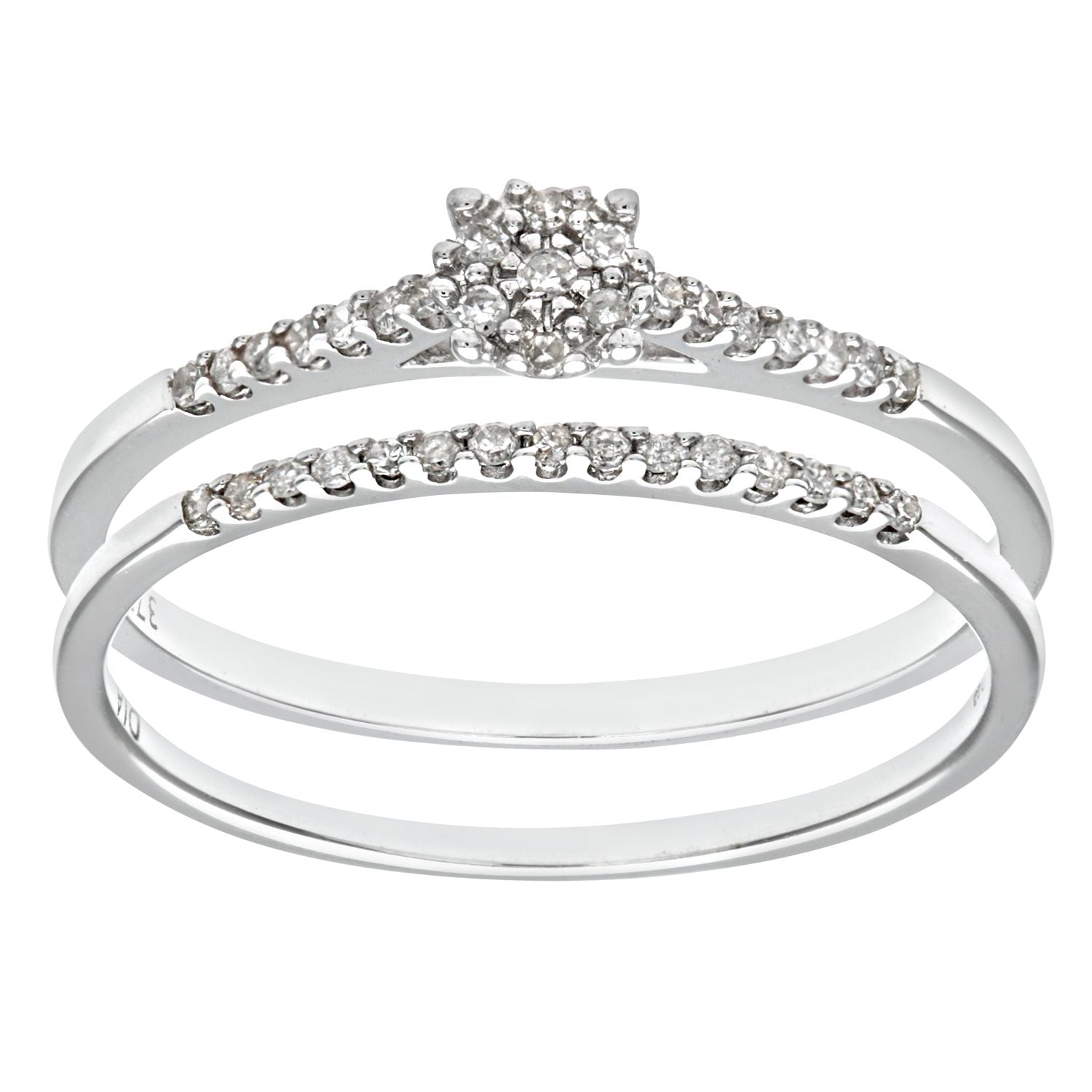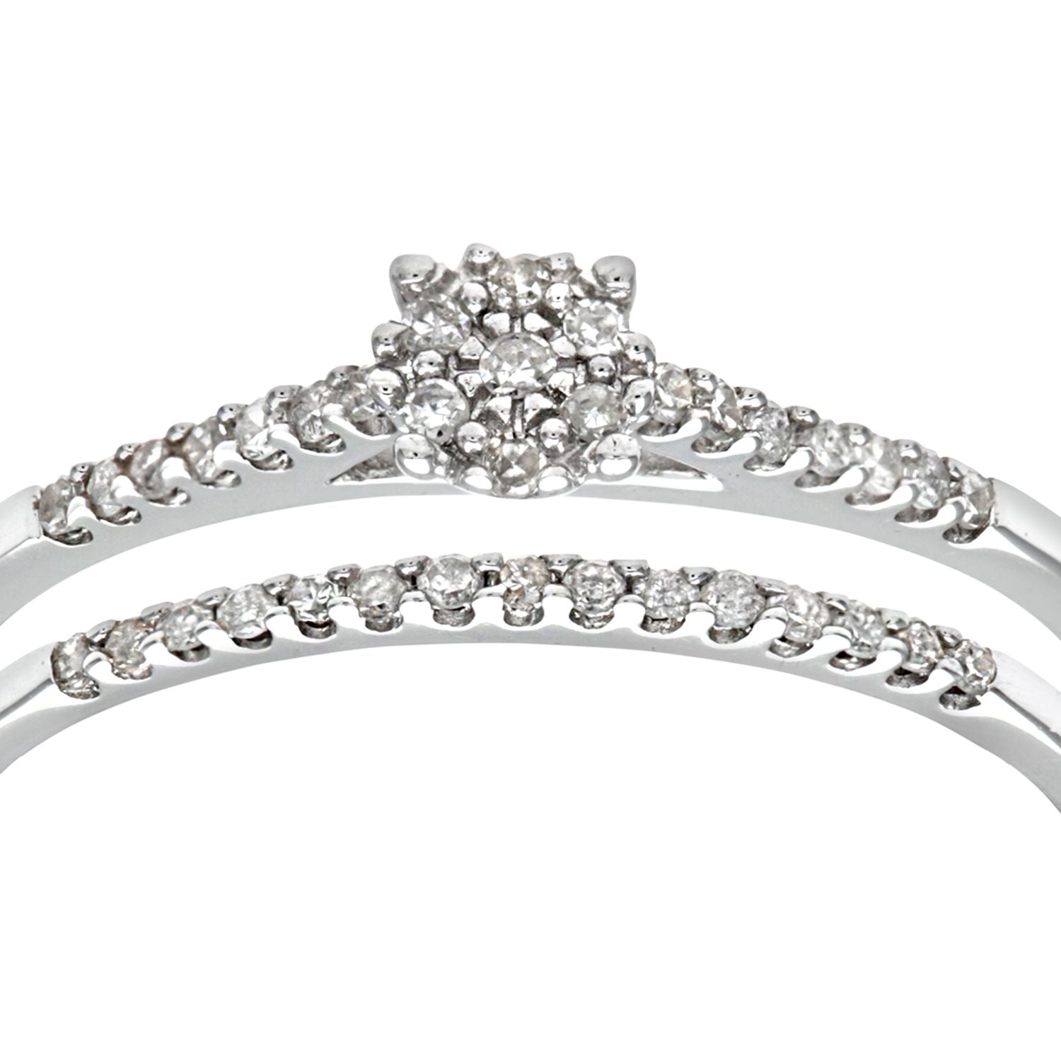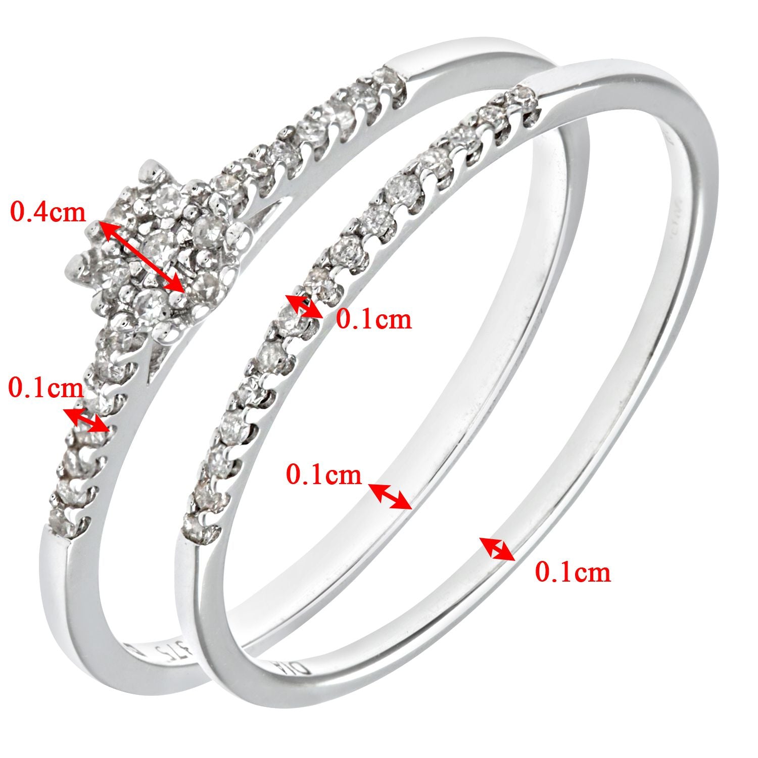 Jewelco London 9ct White Gold Round 16pts Diamond Faux Solitaire Pave Eternity Bridal Set Ring 4mm 1mm.