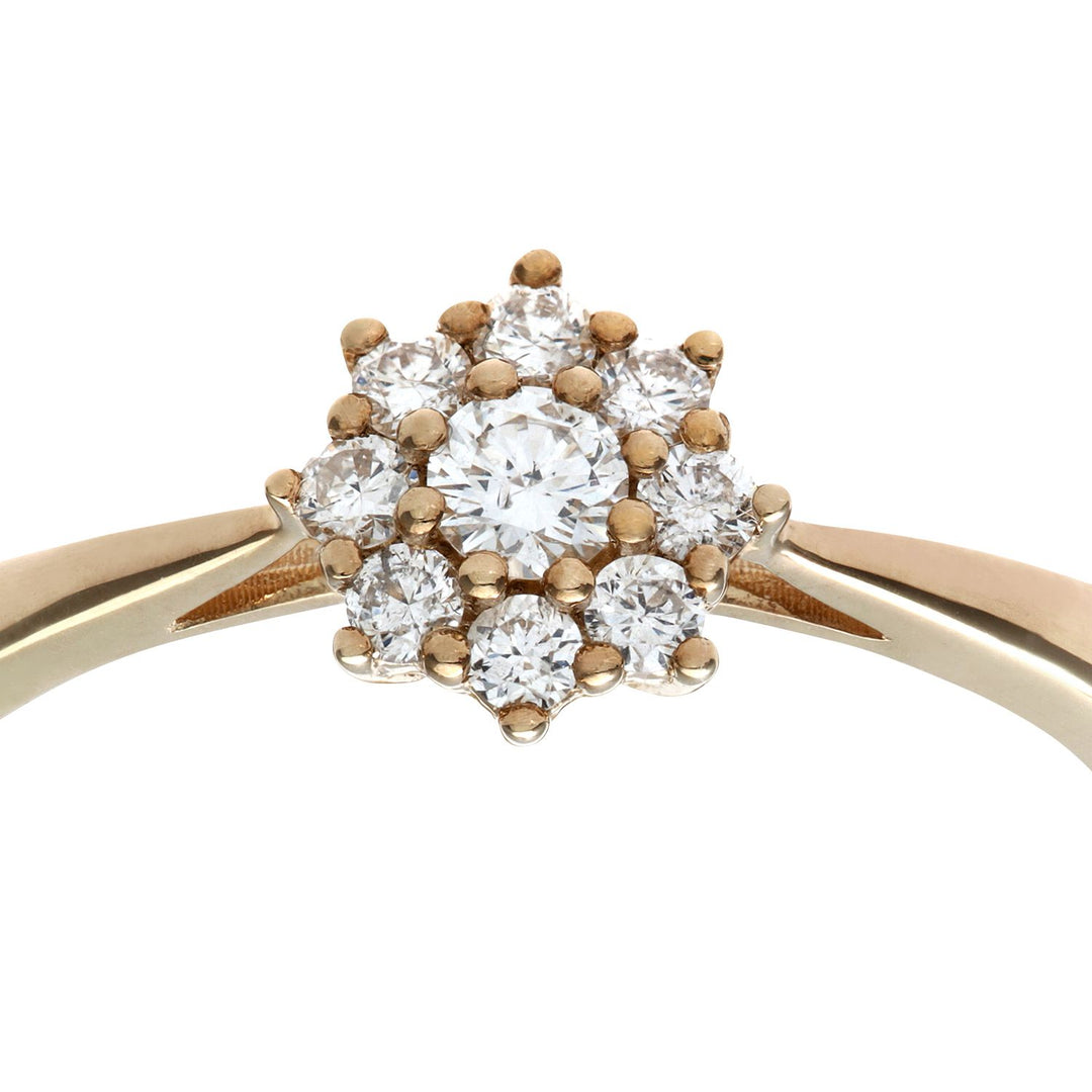 Jewelco London 9ct Yellow Gold Round 1/4ct Diamond 9 Stone Cluster Ring 7mm.