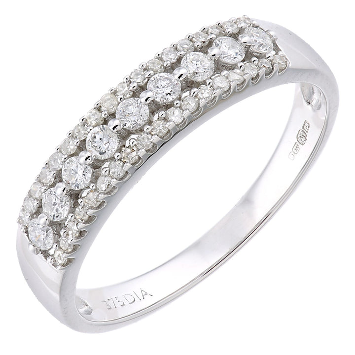 9ct White Gold 1/3ct Diamond 3 Row Graduated Half Eternity Ring