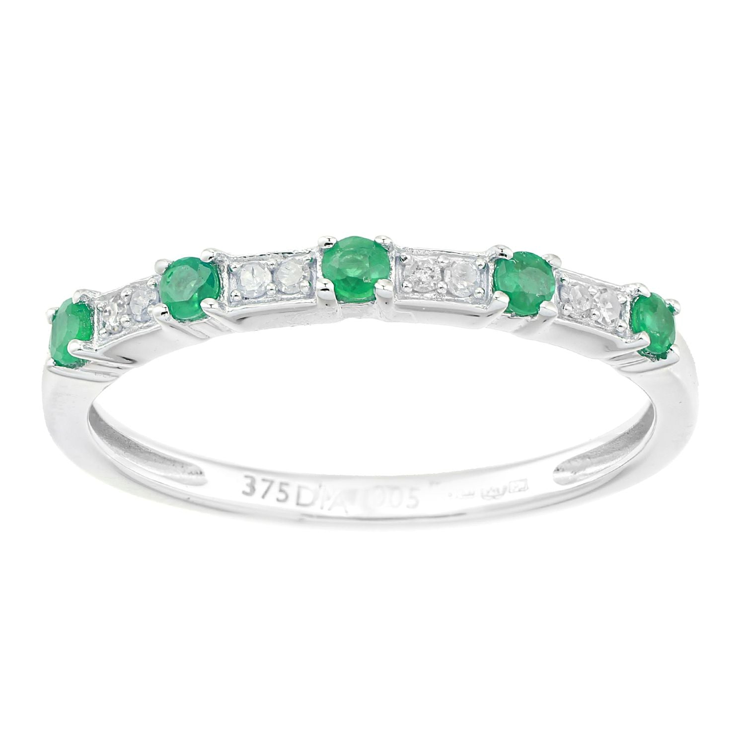 9ct White Gold Diamond Emerald Spacers 5 Stone Eternity Ring