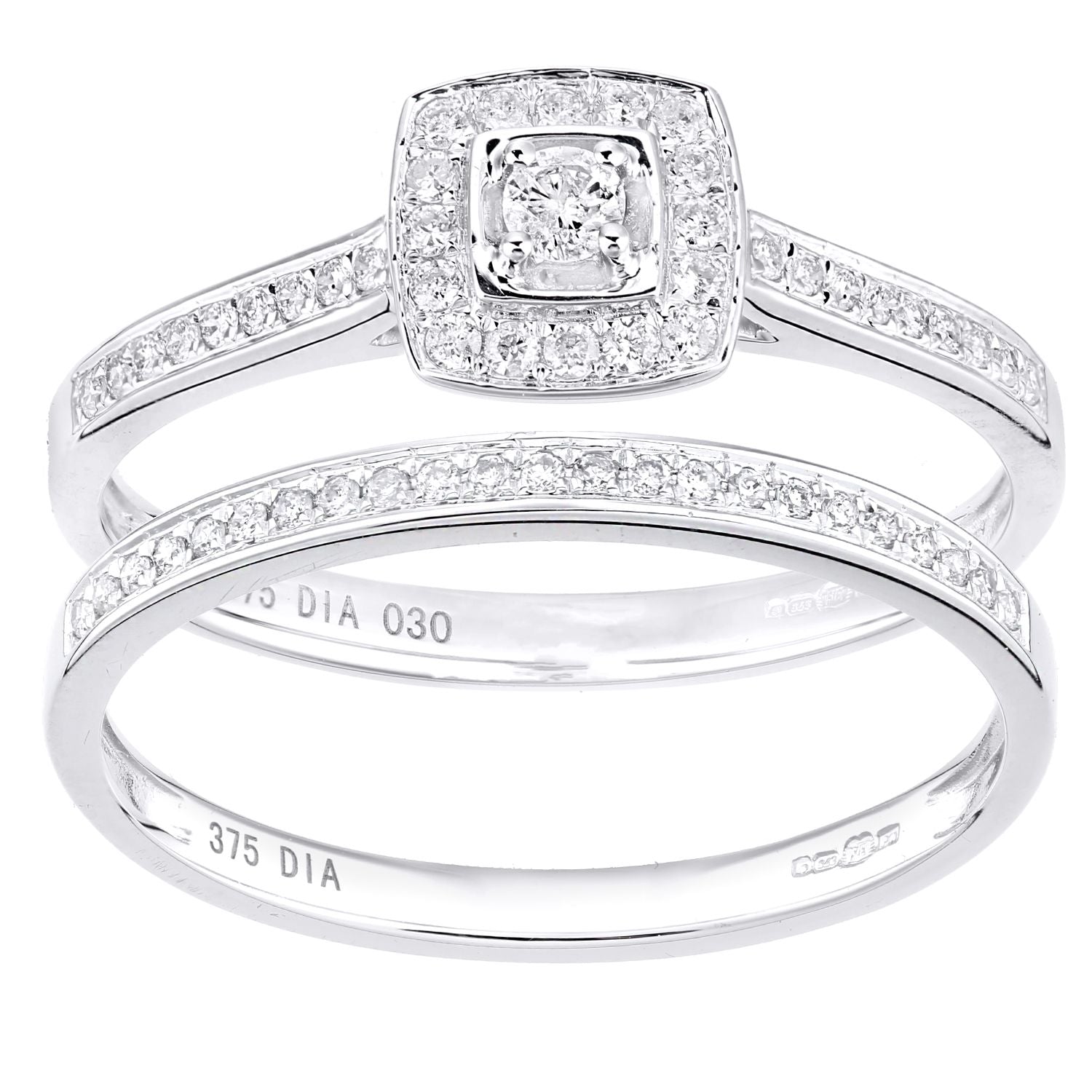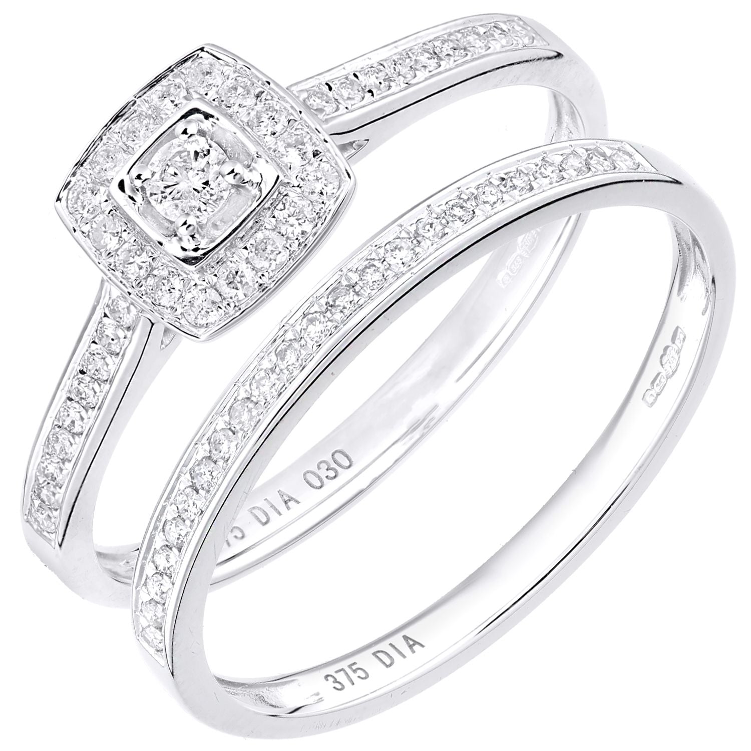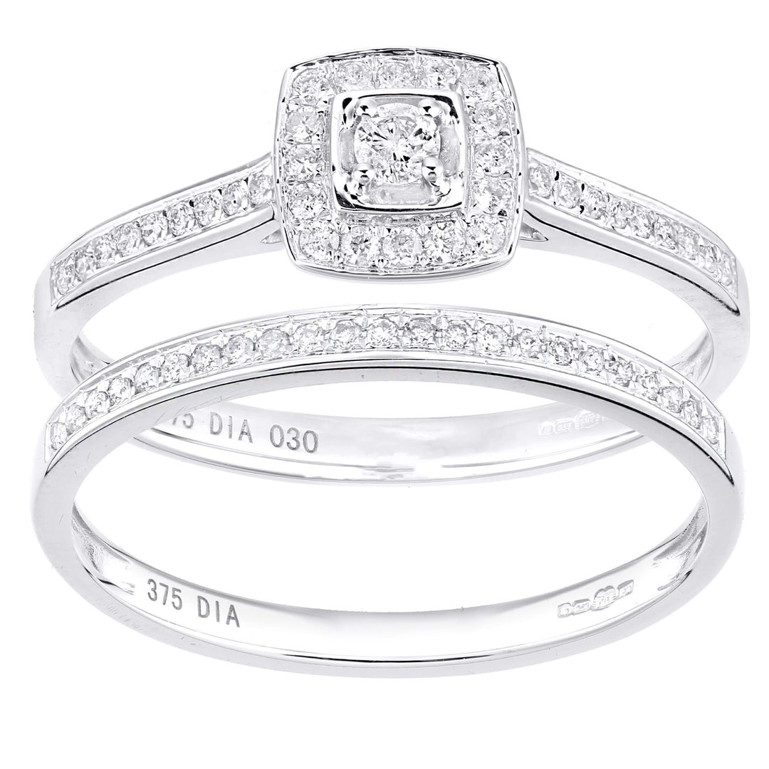 9ct White Gold Round 0.3ct Diamond Bridal Set Engagement Ring