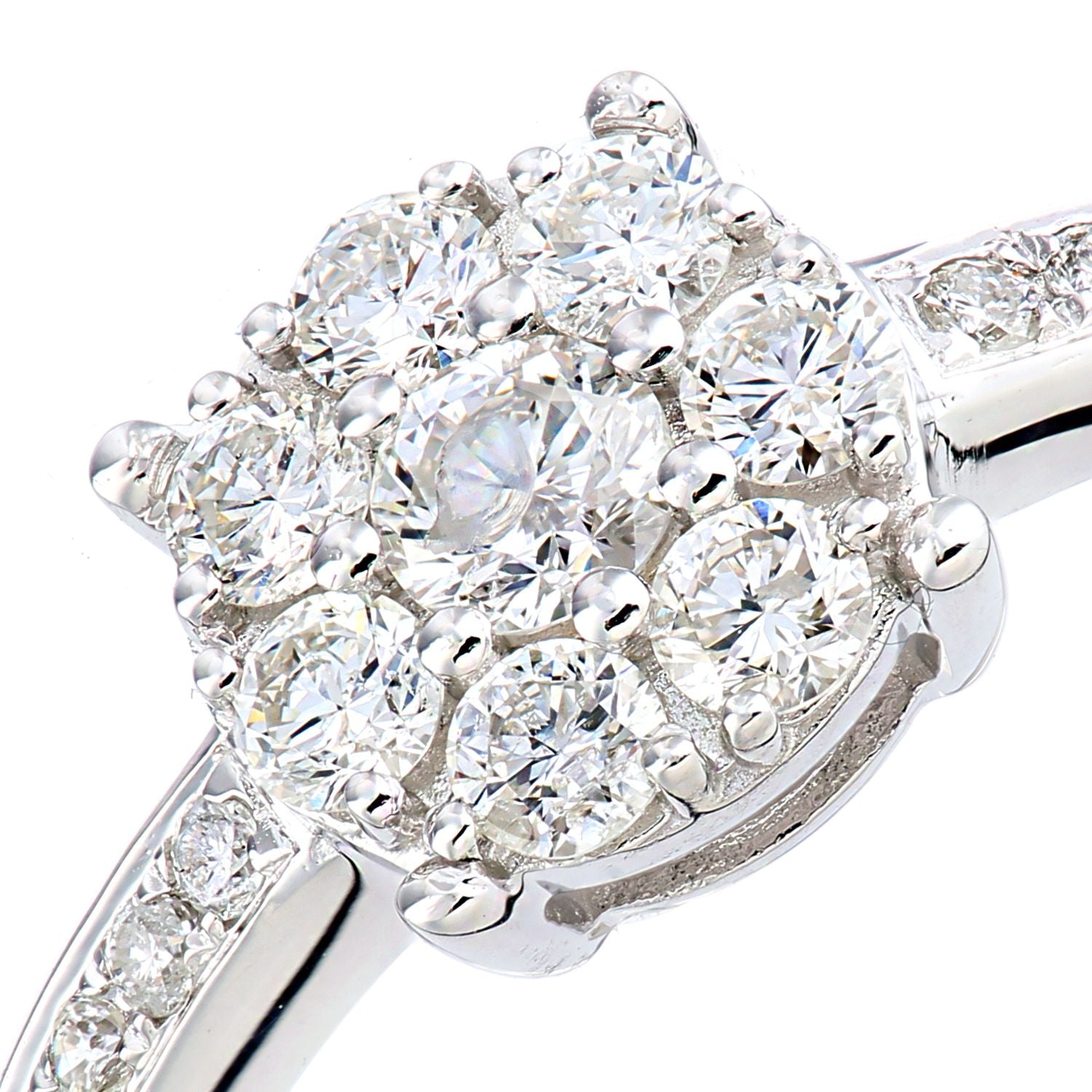 Jewelco London 9ct White Gold Round 1/2ct Diamond Halo Engagement Ring.