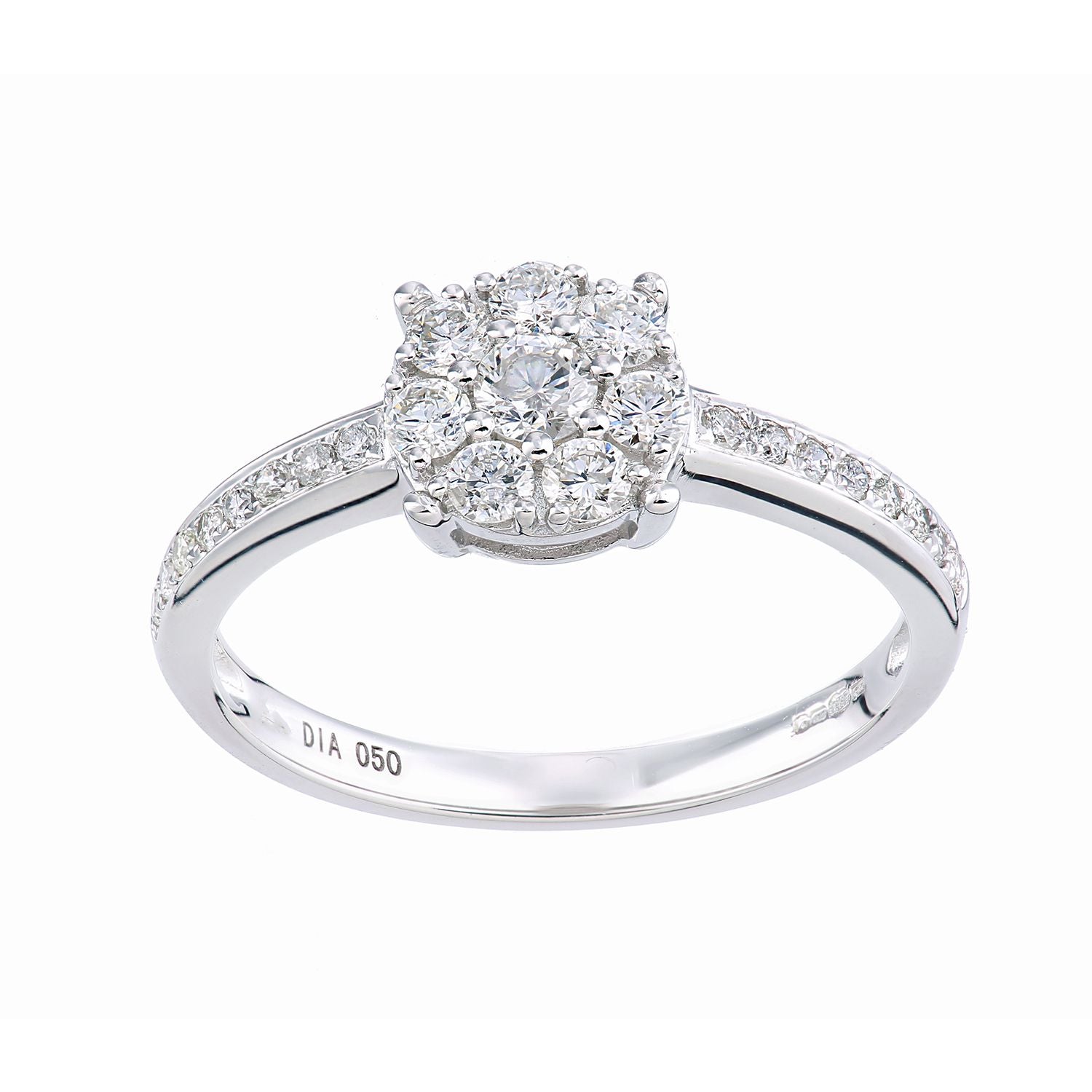 9ct White Gold Round 1/2ct Diamond Halo Engagement Ring